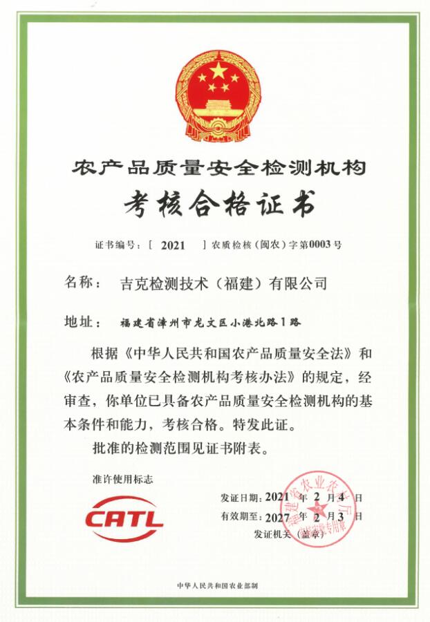 吉克檢測(cè)技術(shù)(福建)有限公司,位于福建省漳州市龍文區(qū)小港北路1號(hào),于2019年8月注冊(cè)成立,是一家獨(dú)立的第三方檢測(cè)公司。公司已經(jīng)通過檢驗(yàn)檢測(cè)機(jī)構(gòu)計(jì)量認(rèn)證(CMA)、農(nóng)產(chǎn)品質(zhì)量安全檢測(cè)機(jī)構(gòu)資質(zhì)認(rèn)證(CATL),獲得中國(guó)合格評(píng)定國(guó)家認(rèn)可委員會(huì)(CNAS)認(rèn)可。公司本著“嚴(yán)謹(jǐn)、規(guī)范、高效、協(xié)作”的原則和對(duì)客戶及社會(huì)高度負(fù)責(zé)的精神,充分利用本公司優(yōu)質(zhì)的檢測(cè)環(huán)境、先進(jìn)的檢測(cè)設(shè)備和專業(yè)的技術(shù)人員,第一時(shí)間為客戶提供科學(xué)、公正、準(zhǔn)確的檢驗(yàn)檢測(cè)報(bào)告。 公司實(shí)驗(yàn)室面積1100多平方米,儀器設(shè)備兩百多臺(tái)(套),固定資產(chǎn)一千多萬(wàn)元,在職員工31人,技術(shù)人員中的中高級(jí)職稱及同等能力人數(shù)占60%以上。我們的服...
